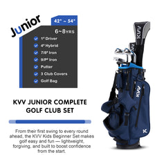 KVV Junior Golf Clubs Set Ages 6-8, Complete Kids Golf Set with Lightweight Stand Bag, Fairway, Iron & Putter Right Handed for Girls & Boys (Navy, Ages 6-8)