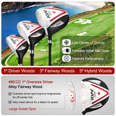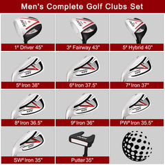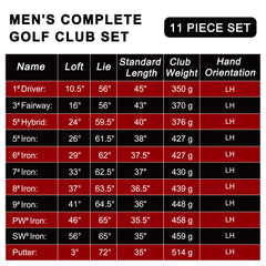 - Men's 11-Piece Complete Golf Clubs Set: The set comes with a 1# driver, a 3# fairway wood, a 5# hybrid, and irons ranging from 5# to P#, along with a putter. This awesome set is specially designed for left-handed male golfers and is an outstanding choice.