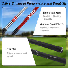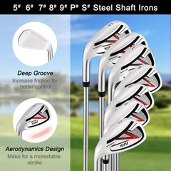 KVV Men's Golf Clubs Package Set, 11-Club Complete Set Without Stand Bag/7-Piece Irons (5~P#), Left Handed