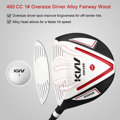 - 460CC 1# Oversized Driver: With a sleek and aerodynamic head shape, this driver enables long and high-flying shots that effortlessly soar through the air. It provides stability during impact and allows for greater control over trajectory.