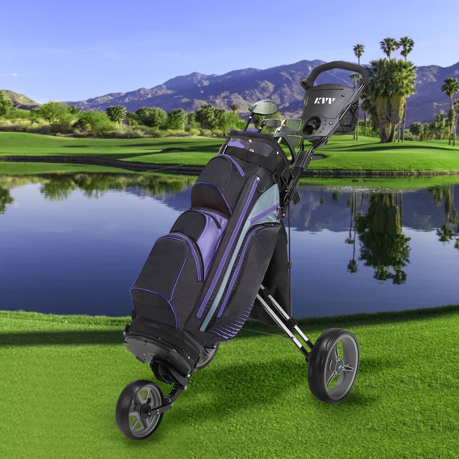 KVV Foldable Lightweight 3 Wheel Golf Cart with Stylish Scorecard Holder, Storage Bag
